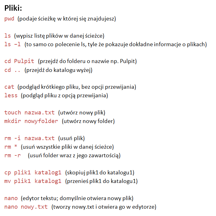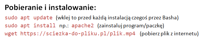 Bash to powłoka systemowa Linuxa. To coś jak Windowsowy CMD. Korzystanie z niego bardzo usprawnia pracę i pozwala nieraz zrobić rzeczy, których nie zrobiłbyś w trybie graficznym. Warto więc poznać jego podstawowe komendy. Oto one: