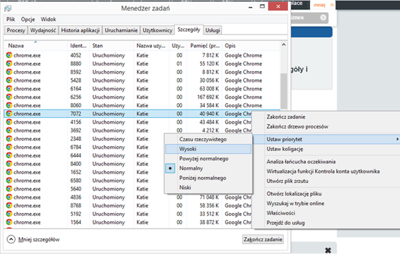 9. Ustaw w Menedżerze zadań (zakładka szczegóły) wysoki priorytet dla aplikacji/procesu